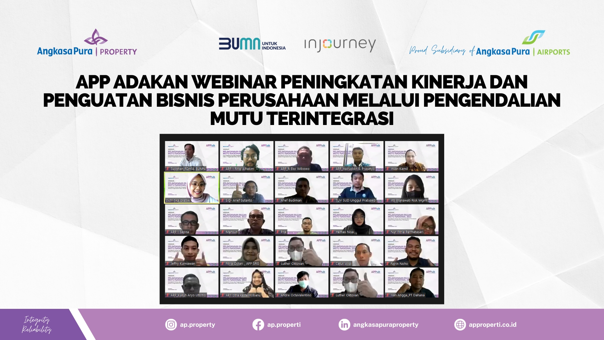 Baca SelengkapnyaJakarta, 15 November 2022 – Dalam rangka menyambut Bulan Mutu Nasional 2022, PT Angkasa Pura Properti mengadakan Webinar Online Bulan Mutu Nasional 2022.